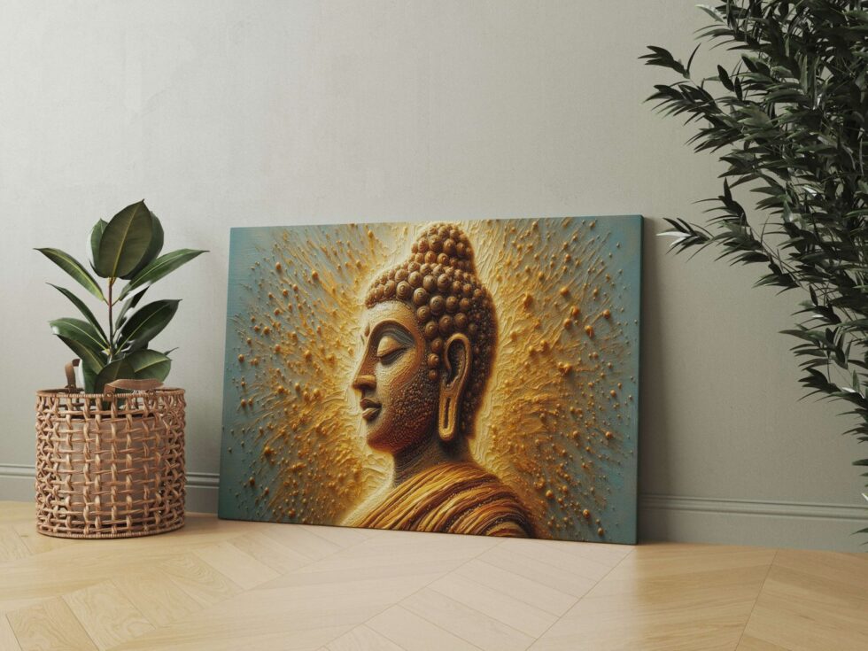 Transform your space into a sanctuary of tranquility with our exquisite Buddha wall paintings. Crafted with meticulous detail and imbued with spiritual serenity, each piece radiates peace and harmony. Elevate your home decor with these timeless artworks, perfect for creating a serene ambiance in any room. Explore our collection and invite the essence of enlightenment into your living space today The canvas is carefully stretched over a durable wooden frame, creating a gallery-quality finish that adds a touch of elegance to any room. Whether you’re looking for a Buddha framed painting for wall or a Buddha big wall painting with frame
